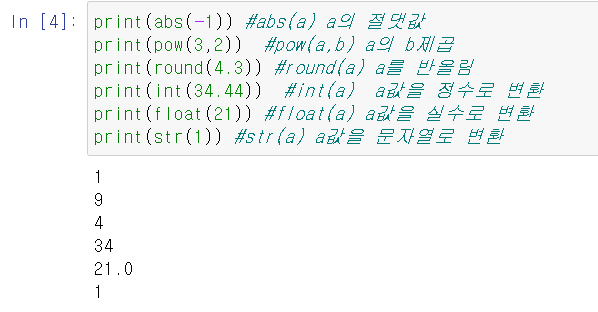 먼저 내장함수의 대표적인(?) 예시들을 살펴보고자 한다.