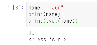 사진을 보면 name변수는 str타입으로 문자열임을 확인 할 수 있다.